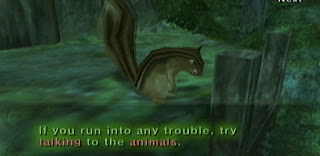 Or at least, not by the humans. After taking out some bandits that are lingering about, a Squirrel informs you that you should try talking to the animals if you need help. Considering you smell like the Ordon trees, most of them will be inclined to trust you.Now you're in Ordon village, and you have to sneak about to get find information on and eventually get a sword and shield. That's right, it's a stealth mission! But truth be told, it's a good one. Like mentioned before, Twilight Princess is incredibly linear, and while that hurts it in some places, here it's welcomed because it won't randomly fail you because the game feels like it.